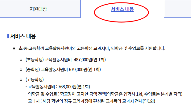 | 사용항목 | 학용품, 교재, 체육복 등 교육 관련 품목 |