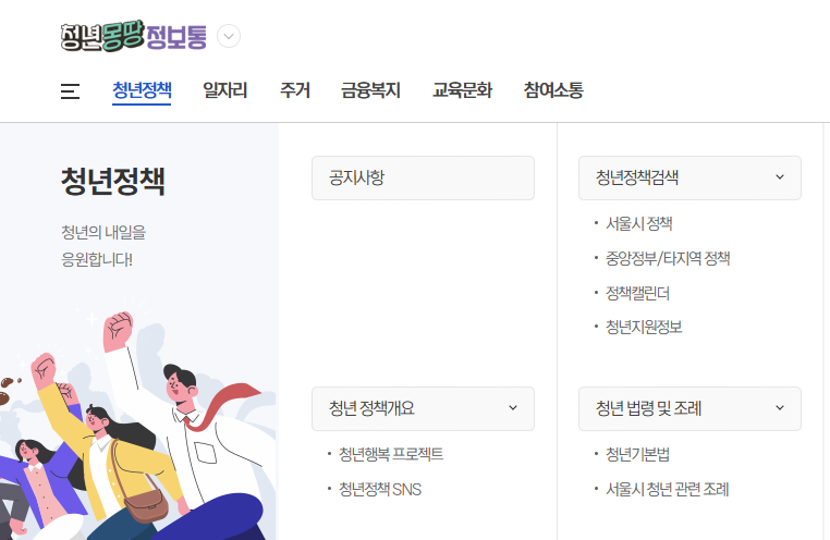 - 청년몽땅정보통 홈페이지 접속
