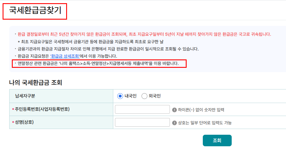 6. 실시간 연말정산 환급금 조회 바로가기