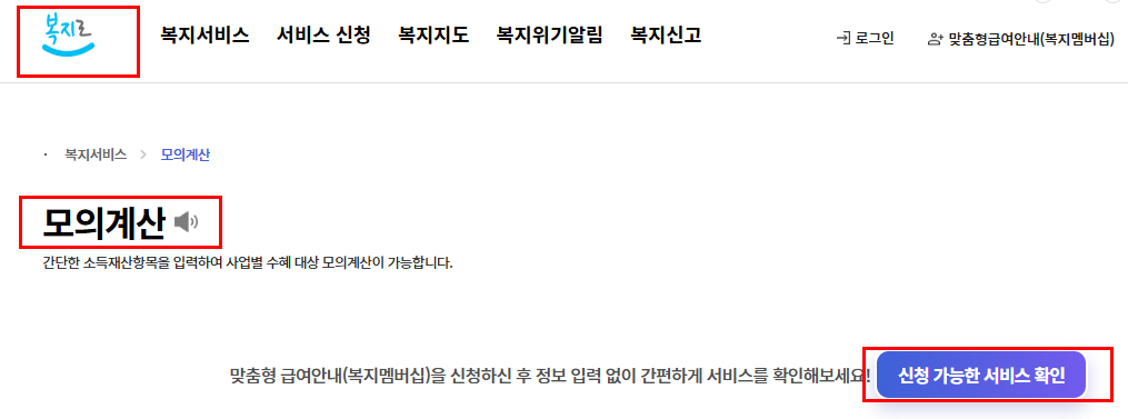 ‘복지로 모의계산기’ 사용법